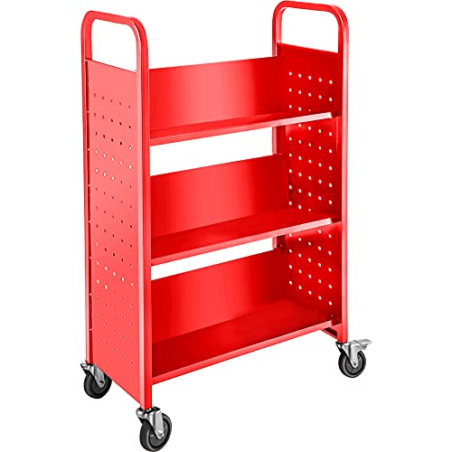 Bestequip Book Cart 200lbs Library Cart 30x14x45 Inch Rolling Book Cart Double Sided W Shaped Sloped Shelves With 4 Inch Lockable Wheels For Home Shelves Office And School Book Truck In Red Office Products Amazon Com