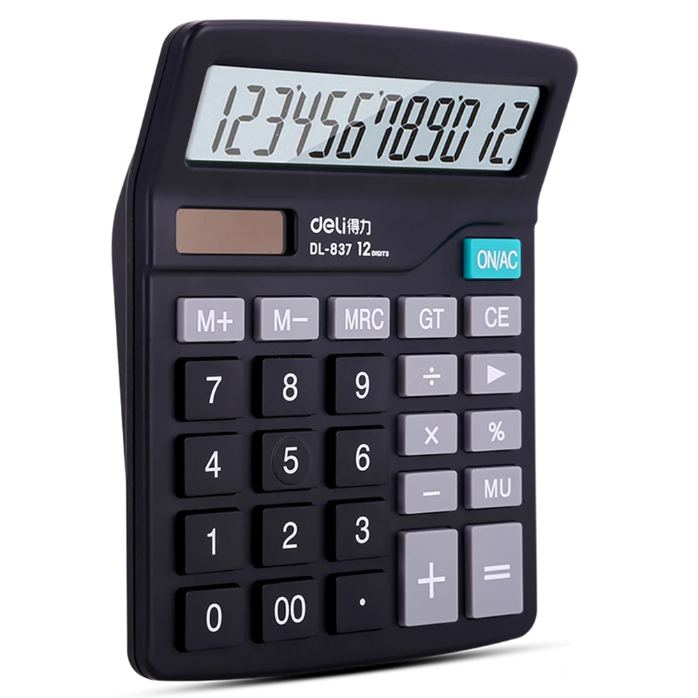 1pcs Deli 837es 12 Digits Portable Calculator Solar Aaa Battery Dual Power Office Commercial Desk Student Household